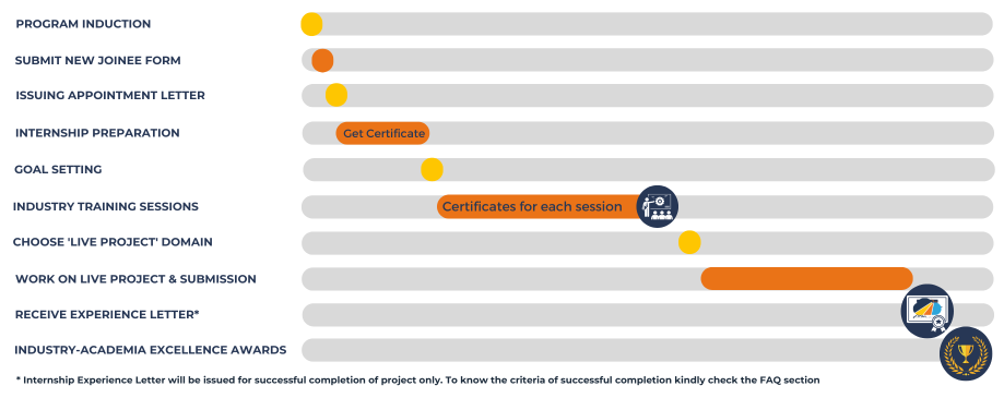 Get an internship experience certificate on successful submission of the live project and be nominated for the Industry-Academia Excellence Award.